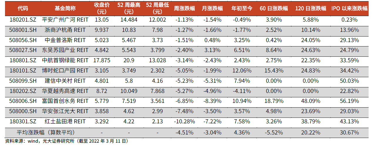 基礎(chǔ)設(shè)施公募REITs行情回顧