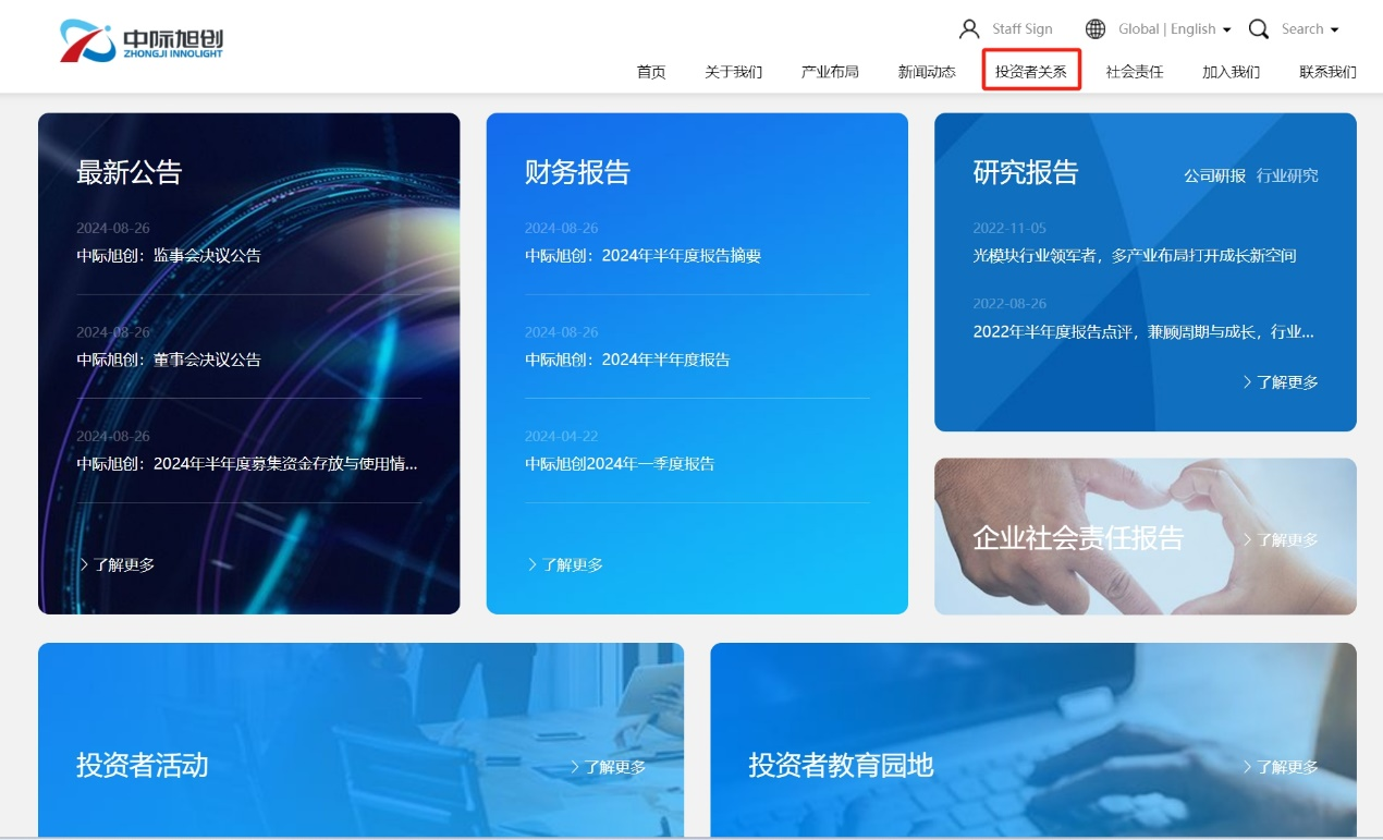 圖為中際旭創(chuàng)官網(wǎng)投資者關(guān)系板塊